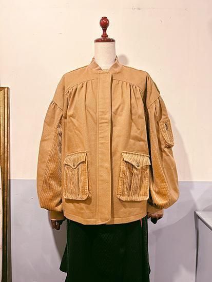 太畝のコーデュロイでポケットや袖下の切り替えをしてポイントに。